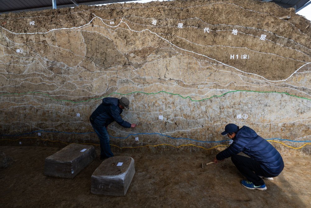 2023年12月4日,考古人員在湖北荊門屈家?guī)X遺址熊家?guī)X水壩現(xiàn)場工作。屈家?guī)X遺址是屈家?guī)X文化的發(fā)現(xiàn)地和命名地,地處大洪山南麓向江漢平原的過渡地帶,是實(shí)證長江中游文明起源的重要大遺址。