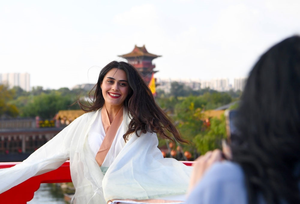 2025年2月24日,游客在“只有河南·戲劇幻城”景區(qū)內游玩。