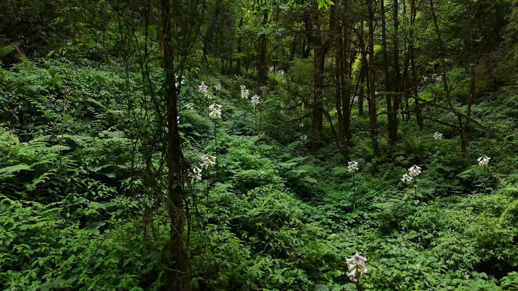近日,云南省龍陵小黑山省級自然保護(hù)區(qū)工作人員在原始密林中發(fā)現(xiàn)罕見野生云南大百合群落,植株數(shù)量超1萬株,最大連片分布面積達(dá)5畝,最高植株突破3米、單株綻放出16朵花。