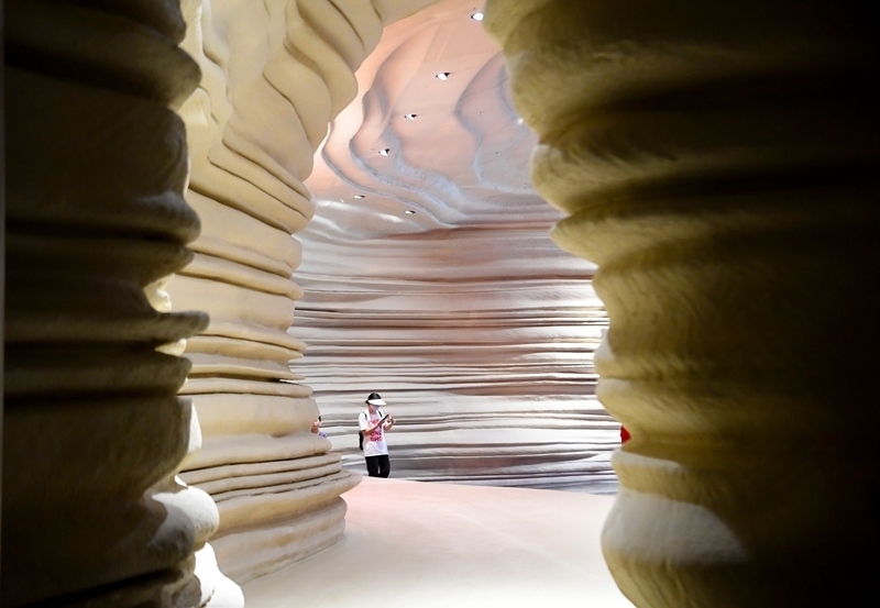 6月14日,參觀者在大河村遺址博物館沉浸式參觀體驗。
