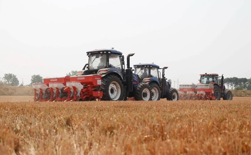 6月13日,在河北省邢臺(tái)市南和區(qū)史召鄉(xiāng)北高五村,農(nóng)民駕駛農(nóng)機(jī)播種玉米。