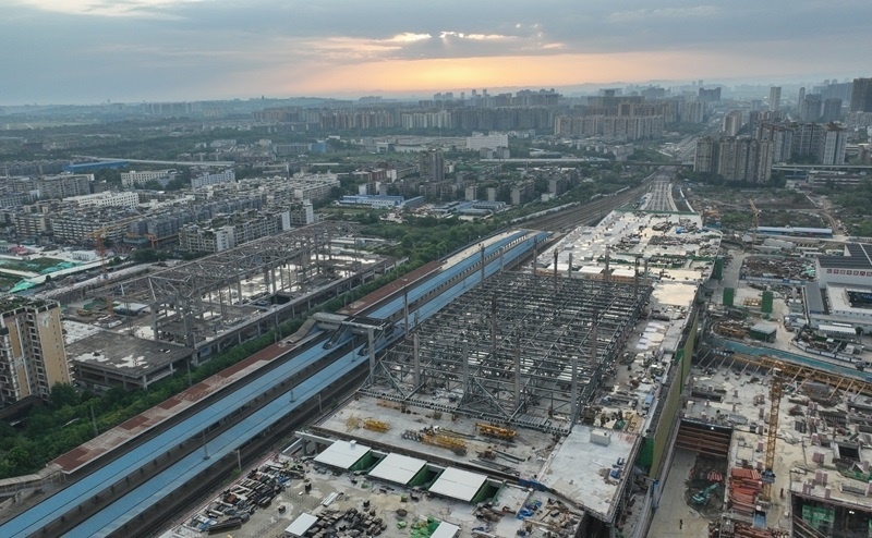 成都站位于四川省成都市,是新中國(guó)第一條自主建設(shè)的鐵路——成渝鐵路的起始站。為滿足成渝中線高鐵建設(shè)、市域鐵路公交化改造建設(shè)等需要,車站進(jìn)行了拆除擴(kuò)建。車站建設(shè)采取“分步施工、南北交替”方案,將施工區(qū)域劃分為南北兩個(gè)作業(yè)面,實(shí)現(xiàn)了鐵路正常運(yùn)輸與工程建設(shè)同步推進(jìn),完成銜接成渝、達(dá)成、寶成等多條鐵路線路的撥接與改造。