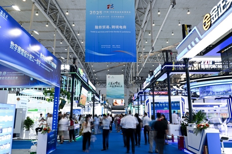 6月26日拍攝的2025(中國)亞歐商品貿(mào)易博覽會服務(wù)貿(mào)易、跨境電商展區(qū)。