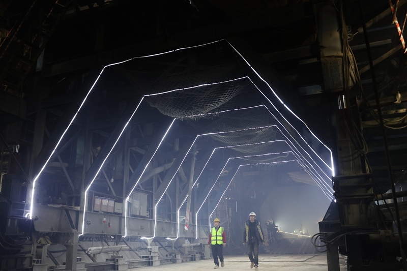 6月29日,工人在已經(jīng)貫通的西成鐵路西科隧道內(nèi)施工。