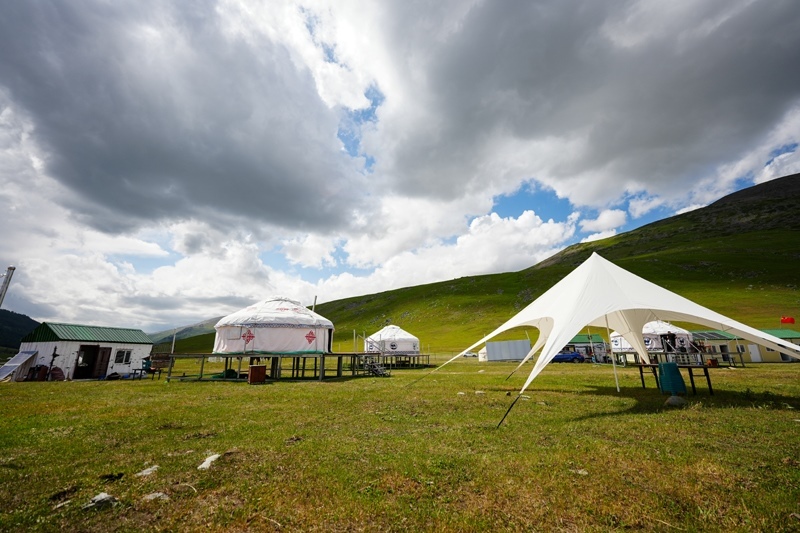 這是6月30日在阿禾公路旁拍攝的由當?shù)卮迕窠?jīng)營的餐飲氈房。
