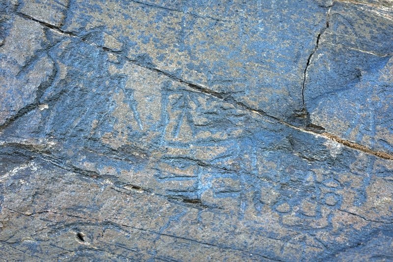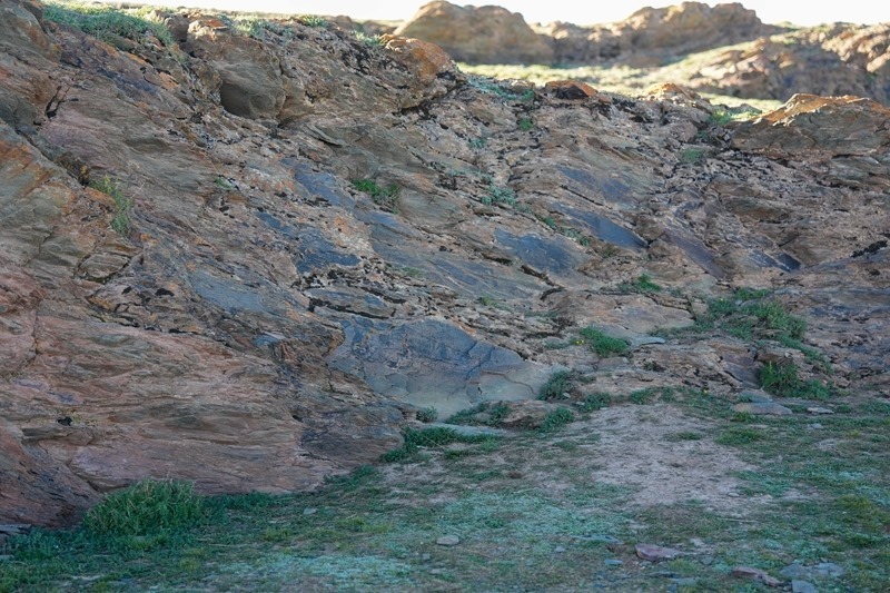 文物考古工作者于2023年7月在青海省瑪多縣扎陵湖畔對尕日塘秦刻石進行現場考察時拍攝的該刻石遺跡照片。
