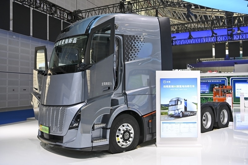 這是在2025年山西(太原)能源產(chǎn)業(yè)博覽會(huì)上展示的一款醇?xì)潆妱?dòng)牽引車(9月27日攝)。
