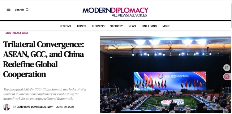 6月29日,歐洲《現(xiàn)代外交》網(wǎng)站刊發(fā)評(píng)論文章《三方協(xié)同:東盟、海合會(huì)與中國重新定義全球合作》。文章從不久前圓滿閉幕的首屆東盟—中國—海合會(huì)峰會(huì)出發(fā),指出東盟、海合會(huì)與中國之間的三方合作對(duì)推動(dòng)世界多極化、促進(jìn)全球南方國家發(fā)展具有重要意義,中國作為負(fù)責(zé)任大國在全球治理中發(fā)揮了關(guān)鍵領(lǐng)導(dǎo)作用。