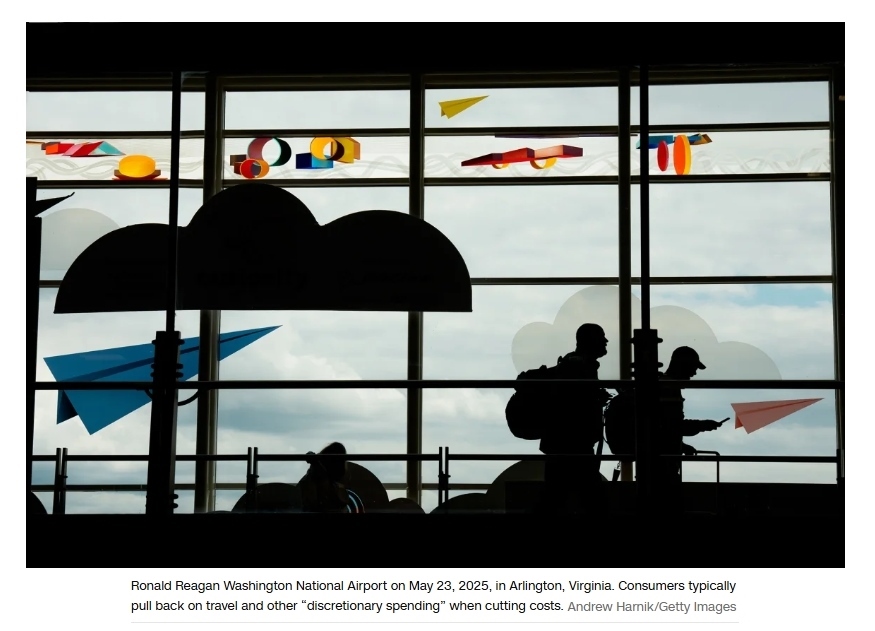 對(duì)于像威爾伯恩這樣的家庭來(lái)說(shuō),春季的瘋狂消費(fèi)是對(duì)抗不確定性的“豪賭”,可能需要多年的精打細(xì)算來(lái)償還債務(wù)。如今背負(fù)新債的美國(guó)人正縮減消費(fèi),尤其是餐飲、旅行等非必需支出。美國(guó)金融服務(wù)網(wǎng)站銀率網(wǎng)(Bankrate)的調(diào)查顯示,54%的美國(guó)成年人計(jì)劃減少此類(lèi)消費(fèi),高于去年的49%。商務(wù)部數(shù)據(jù)也印證了這一情況,五月份餐館和酒吧的零售支出下降了0.9%,這是自二月以來(lái)的首次月度下降,也是自2023年2月以來(lái)的最大降幅。