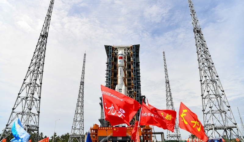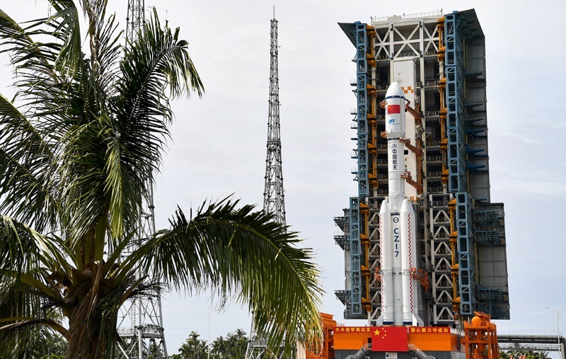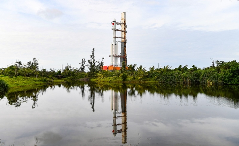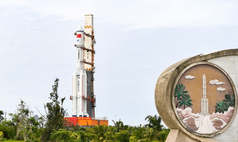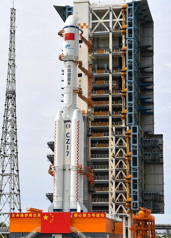 7月12日,天舟九號(hào)貨運(yùn)飛船與長(zhǎng)征七號(hào)遙十運(yùn)載火箭組合體垂直轉(zhuǎn)運(yùn)至發(fā)射區(qū)。