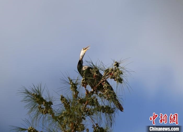 薛美麗認為,“稀客”黑腹蛇鵜的到來,是對濕地公園近年來生態(tài)環(huán)境保護、生態(tài)修復(fù)工作成效的間接肯定。
