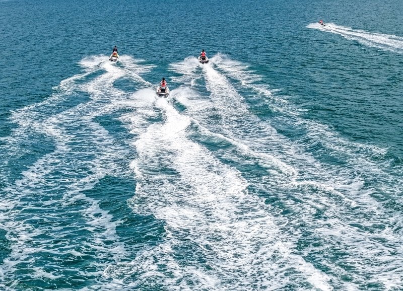 7月24日,游客在山東省榮成市那香海國際旅游度假區(qū)體驗“水上飛人”(無人機照片)。