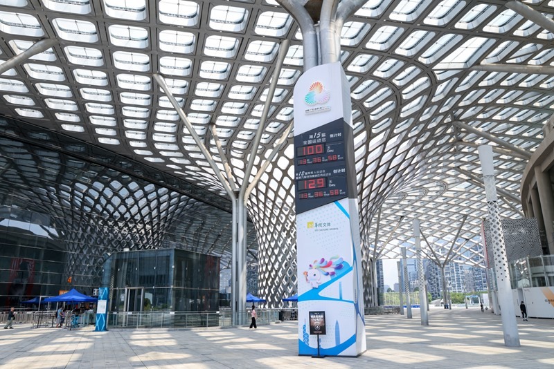 這是8月1日在深圳灣體育中心拍攝的第十五屆全國運動會倒計時牌。