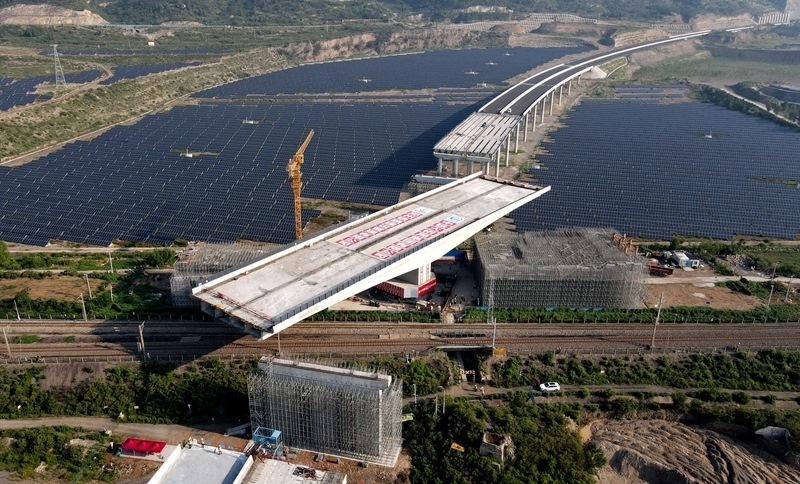 當(dāng)日,由中鐵大橋局承建的河南省濟(jì)源市沿太行山高速公路上跨焦(作)柳(州)鐵路立交橋成功轉(zhuǎn)體。轉(zhuǎn)體主梁總長130米,總重量達(dá)2.1萬噸。