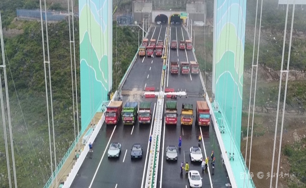 花江峽谷大橋啟動(dòng)荷載試驗(yàn)8月21日,隨著6輛35噸的三軸載重車(chē)率先駛上橋面,花江峽谷大橋荷載試驗(yàn)正式啟動(dòng),迎來(lái)通車(chē)前的“關(guān)鍵大考”。