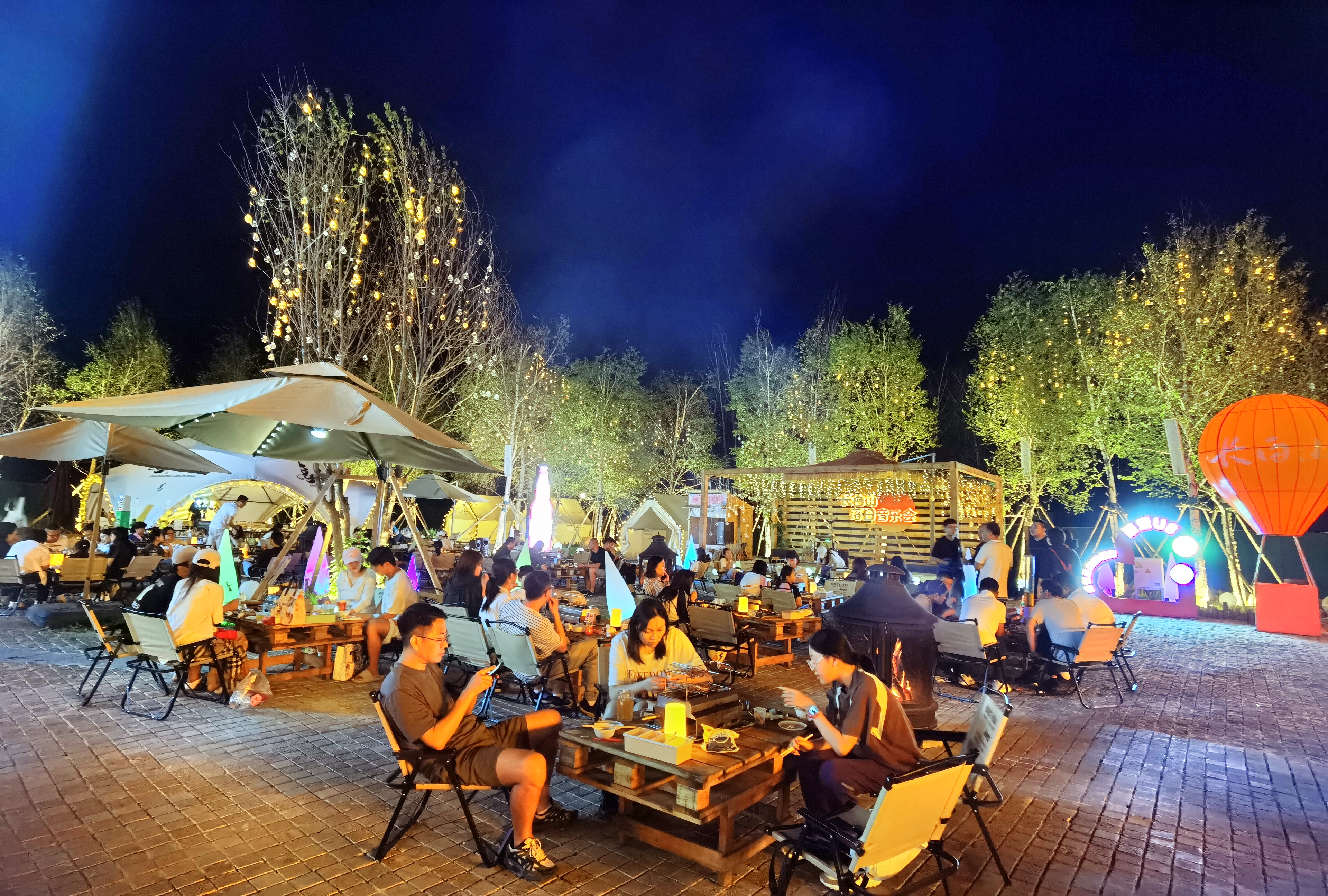 夜幕初降,云頂市集人潮涌動,樂隊彈唱與林間松風(fēng)交織;雪絨花音樂生活館里,燈光璀璨,民謠悠遠(yuǎn);美人松愛情森林里,漫步其間的情侶與家庭,寫下屬于他們的浪漫記憶。更令人驚艷的,是今夏盛大開街的恩都里(滿語enduri意為“神靈”)休閑度假商旅社區(qū)。