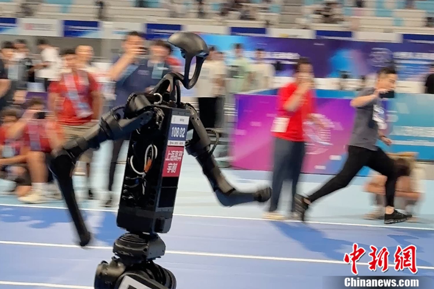 奔跑中的人形機(jī)器人。記者 吳家駒 攝