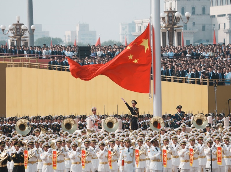 9月3日,紀(jì)念中國人民抗日戰(zhàn)爭暨世界反法西斯戰(zhàn)爭勝利80周年大會(huì)在北京隆重舉行。這是天安門廣場舉行隆重的升國旗儀式。