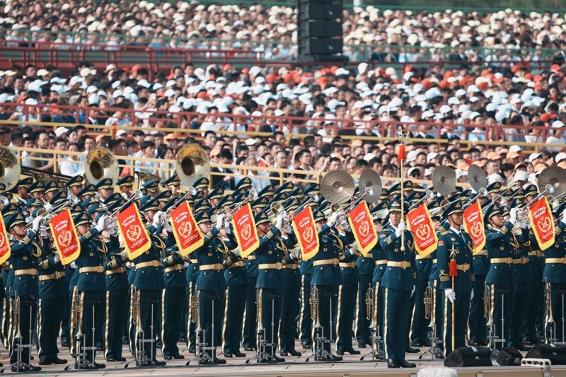 9月3日,紀(jì)念中國人民抗日戰(zhàn)爭暨世界反法西斯戰(zhàn)爭勝利80周年大會在北京隆重舉行。這是中國人民解放軍聯(lián)合軍樂團(tuán)在演奏。