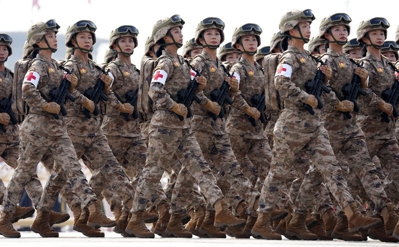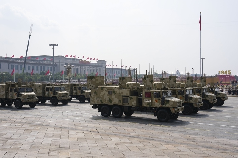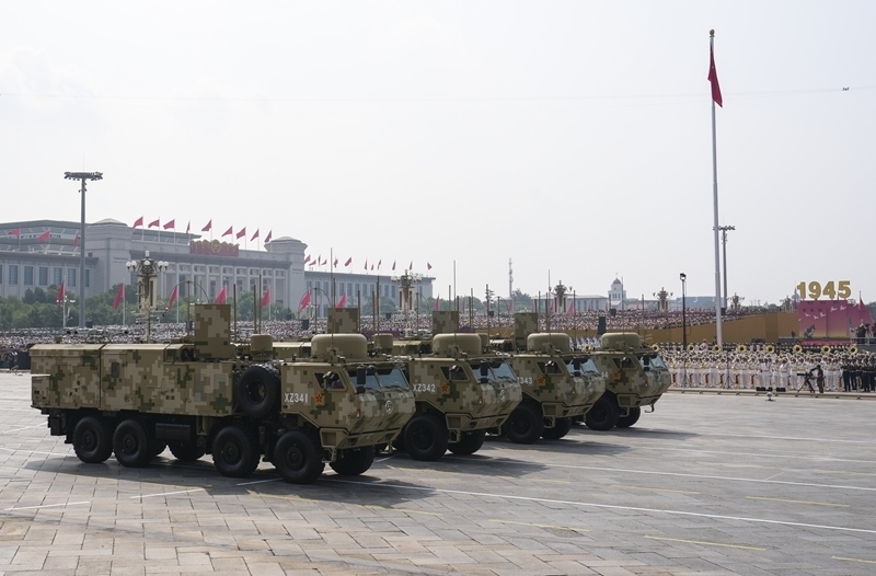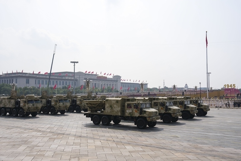 9月3日,紀(jì)念中國人民抗日戰(zhàn)爭暨世界反法西斯戰(zhàn)爭勝利80周年大會在北京隆重舉行。這是信息支援方隊接受檢閱。