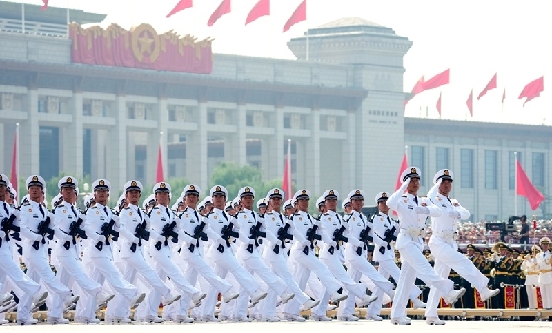 9月3日,紀(jì)念中國人民抗日戰(zhàn)爭暨世界反法西斯戰(zhàn)爭勝利80周年大會在北京隆重舉行。這是海軍方隊接受檢閱。