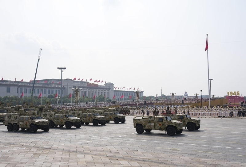 9月3日,紀(jì)念中國人民抗日戰(zhàn)爭暨世界反法西斯戰(zhàn)爭勝利80周年大會在北京隆重舉行。這是裝備保障方隊接受檢閱。