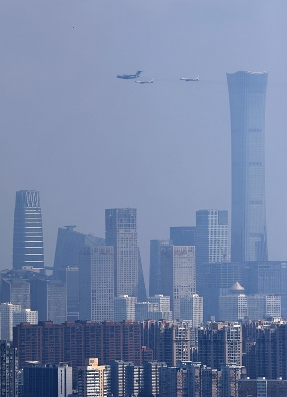 9月3日,紀(jì)念中國人民抗日戰(zhàn)爭暨世界反法西斯戰(zhàn)爭勝利80周年大會在北京隆重舉行。這是轟炸機(jī)梯隊接受檢閱。