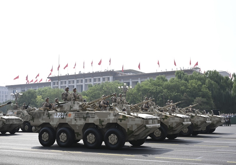 9月3日,紀(jì)念中國人民抗日戰(zhàn)爭暨世界反法西斯戰(zhàn)爭勝利80周年大會(huì)在北京隆重舉行。這是裝備保障方隊(duì)接受檢閱。