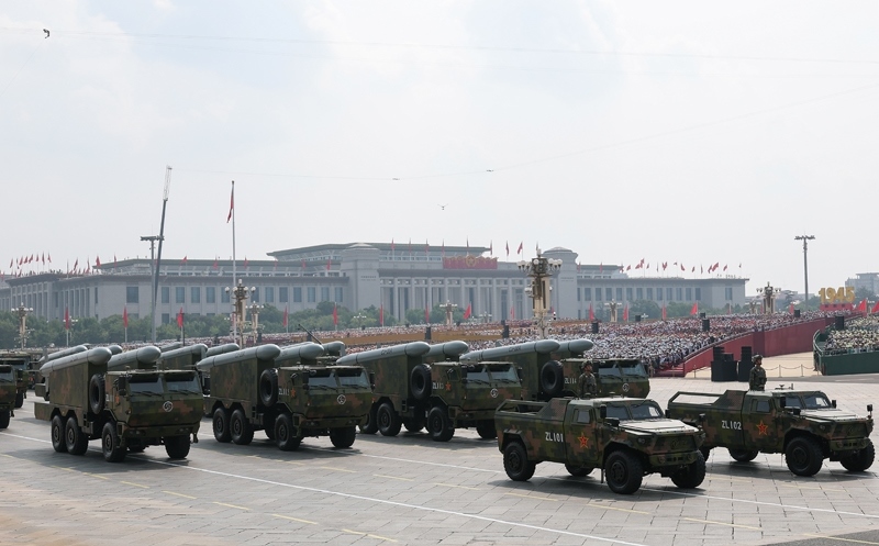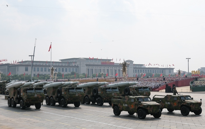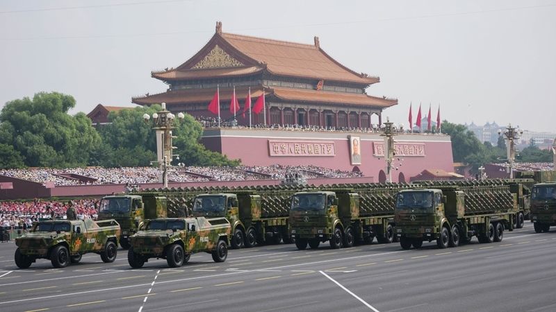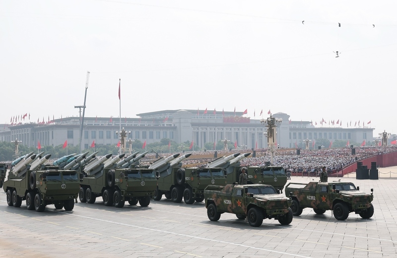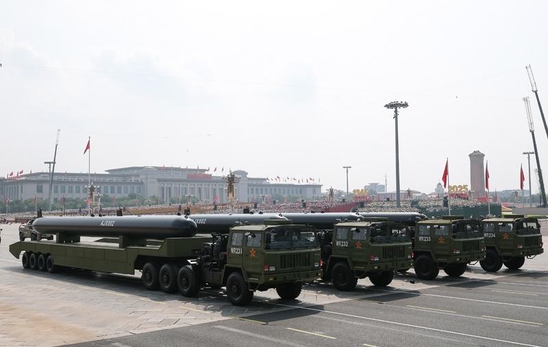 9月3日,紀(jì)念中國人民抗日戰(zhàn)爭暨世界反法西斯戰(zhàn)爭勝利80周年大會(huì)在北京隆重舉行。這是高超聲速導(dǎo)彈方隊(duì)接受檢閱。