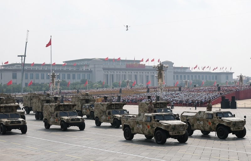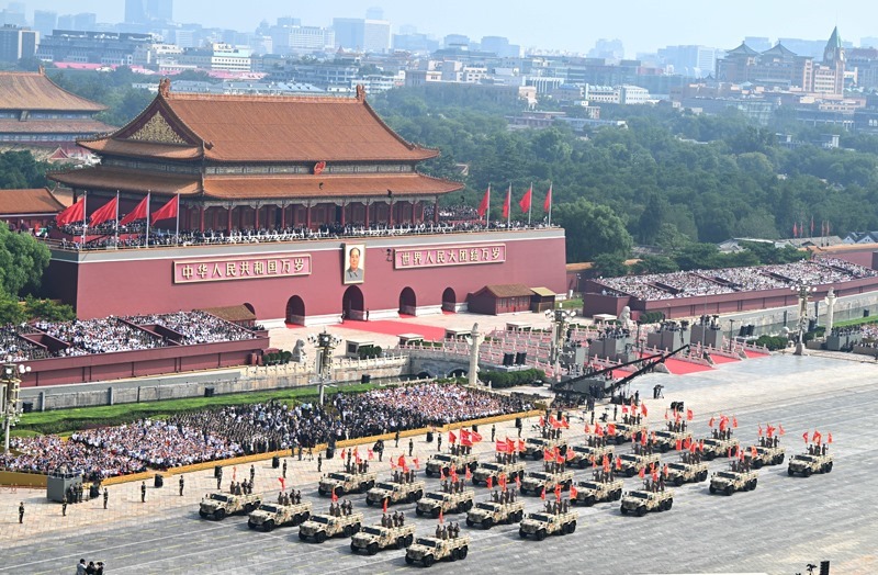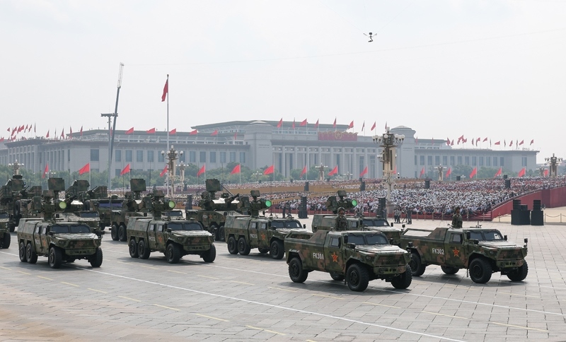 9月3日,紀(jì)念中國人民抗日戰(zhàn)爭暨世界反法西斯戰(zhàn)爭勝利80周年大會(huì)在北京隆重舉行。這是信息支援方隊(duì)通過天安門廣場。