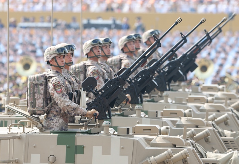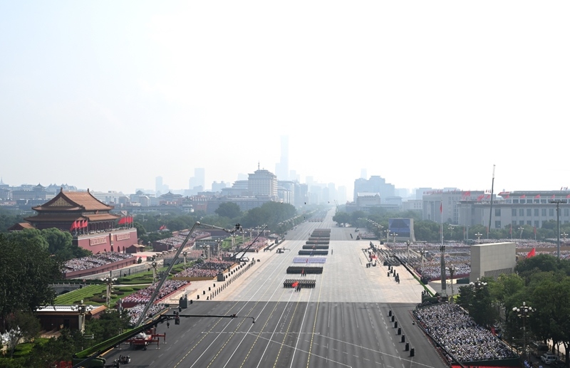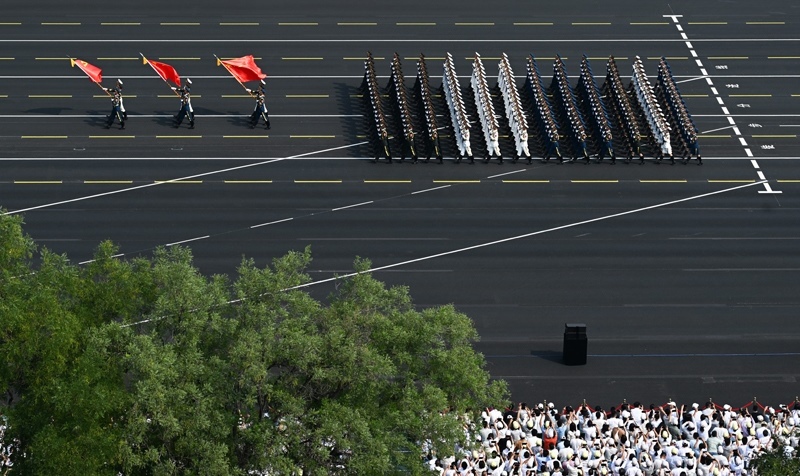 9月3日,紀(jì)念中國人民抗日戰(zhàn)爭暨世界反法西斯戰(zhàn)爭勝利80周年大會(huì)在北京隆重舉行。這是徒步方隊(duì)接受檢閱。