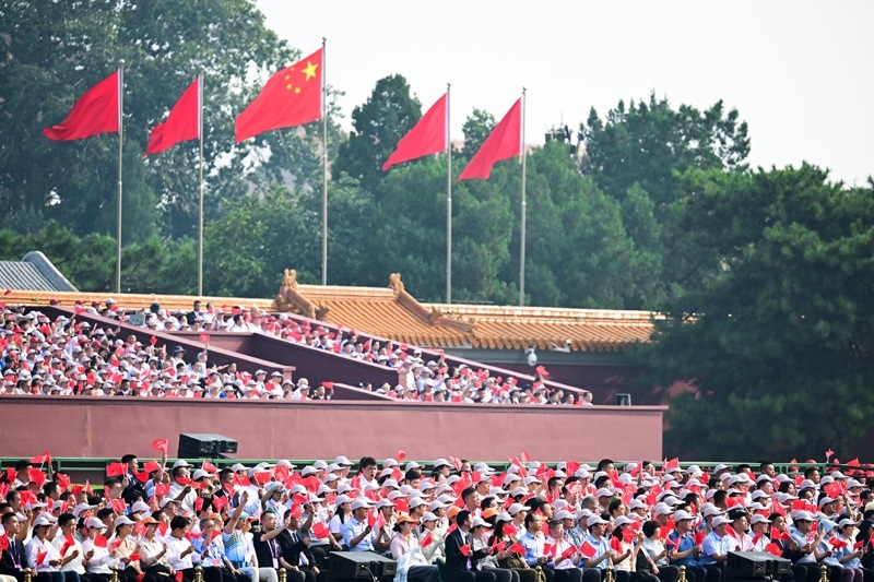 9月3日,紀(jì)念中國人民抗日戰(zhàn)爭暨世界反法西斯戰(zhàn)爭勝利80周年大會(huì)在北京隆重舉行。這是觀禮嘉賓。