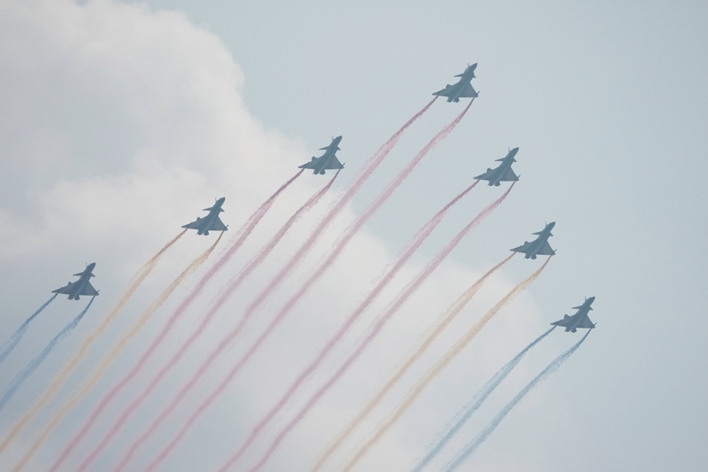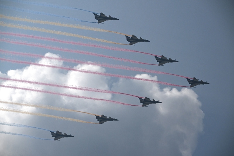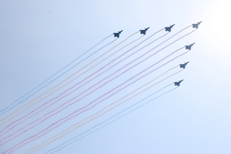 9月3日,紀(jì)念中國人民抗日戰(zhàn)爭暨世界反法西斯戰(zhàn)爭勝利80周年大會(huì)在北京隆重舉行。這是教練機(jī)梯隊(duì)接受檢閱。