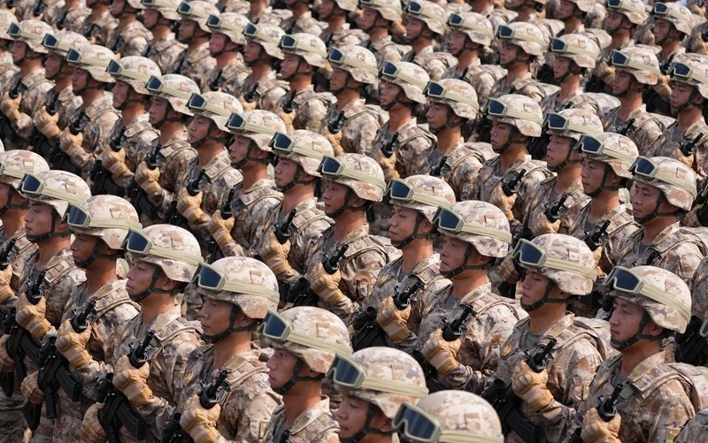 9月3日,紀(jì)念中國人民抗日戰(zhàn)爭暨世界反法西斯戰(zhàn)爭勝利80周年大會在北京隆重舉行。這是網(wǎng)絡(luò)空間部隊(duì)方隊(duì)接受檢閱。