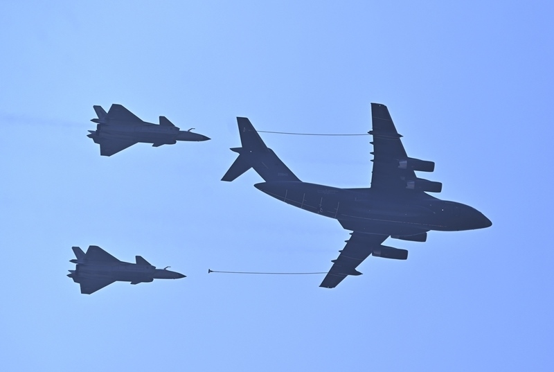 9月3日,紀(jì)念中國人民抗日戰(zhàn)爭暨世界反法西斯戰(zhàn)爭勝利80周年大會在北京隆重舉行。這是加受油機(jī)梯隊(duì)接受檢閱。