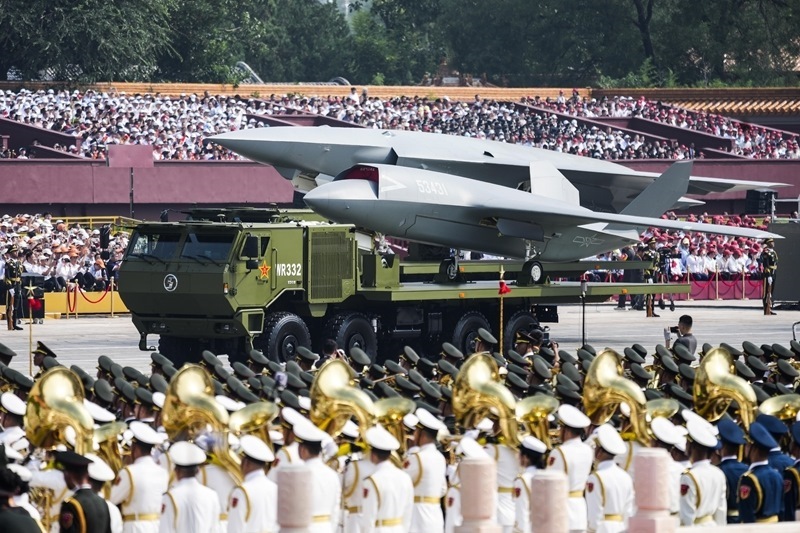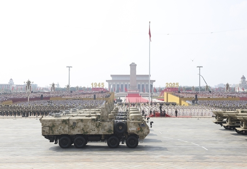 9月3日,紀(jì)念中國人民抗日戰(zhàn)爭暨世界反法西斯戰(zhàn)爭勝利80周年大會在北京隆重舉行。這是高超聲速導(dǎo)彈方隊(duì)接受檢閱。