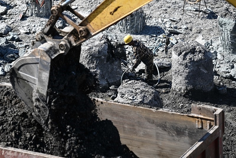 9月5日,工人在海南商業(yè)航天發(fā)射場二期項目四號發(fā)射工位施工。