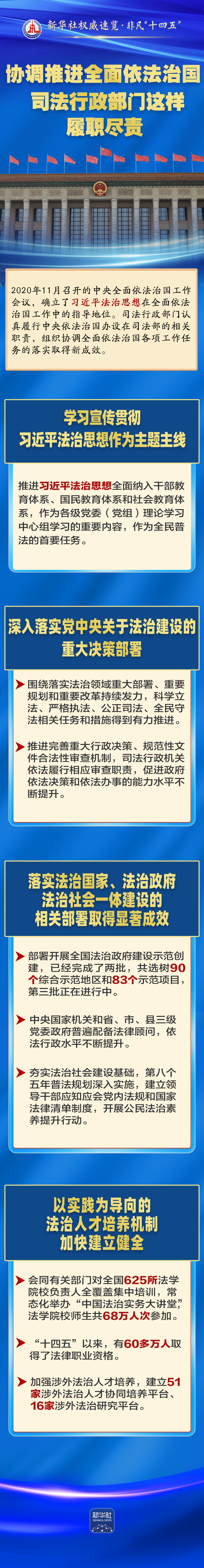 “十四五”期間,在協(xié)調(diào)推進全面依法治國工作落實方面,司法行政部門有哪些主要做法,取得了什么樣的成效?國新辦8日舉行的“高質(zhì)量完成‘十四五’規(guī)劃”發(fā)布會上,司法部從四個方面做出回應(yīng)。