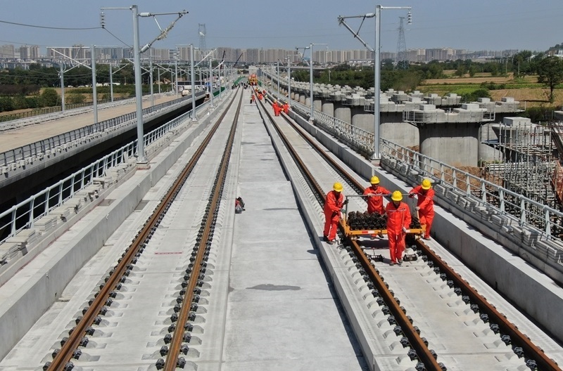9月8日,在西十高鐵建設現(xiàn)場西安東至藍田作業(yè)區(qū)間,施工人員將首對500米長的無縫鋼軌平穩(wěn)鋪設在無砟軌道板上,標志著由西成客專陜西公司建設、中鐵四局施工的西十高鐵全線鋪軌正式啟動。
