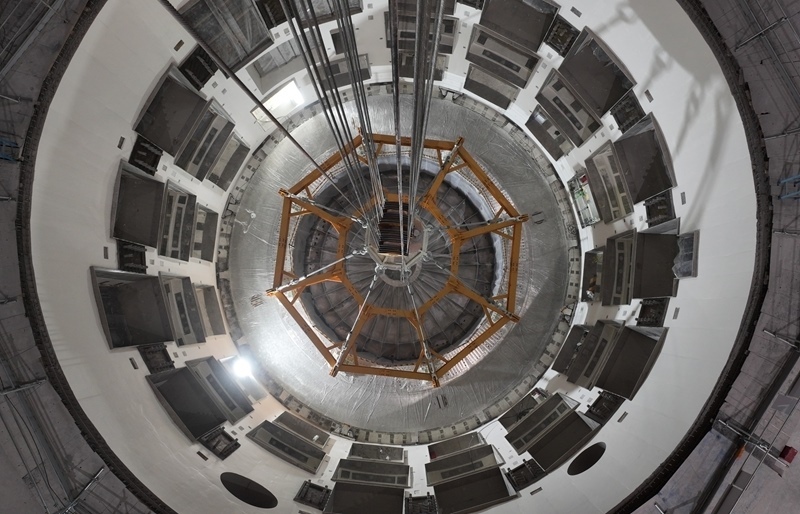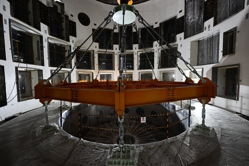 這是10月1日在緊湊型聚變能實(shí)驗(yàn)裝置(BEST)建設(shè)現(xiàn)場拍攝的成功落位安裝的杜瓦底座(無人機(jī)照片)。