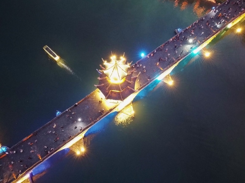 10月3日,游客在貴州省黔東南苗族侗族自治州鎮(zhèn)遠縣古城游玩(無人機照片)。