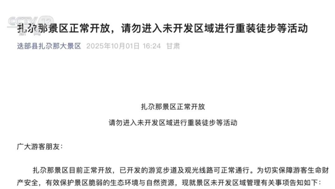 假期第一天,扎尕那景區(qū)宣布,嚴禁任何組織或個人未經(jīng)批準擅自進入其未開發(fā)區(qū)域開展重裝徒步等活動。