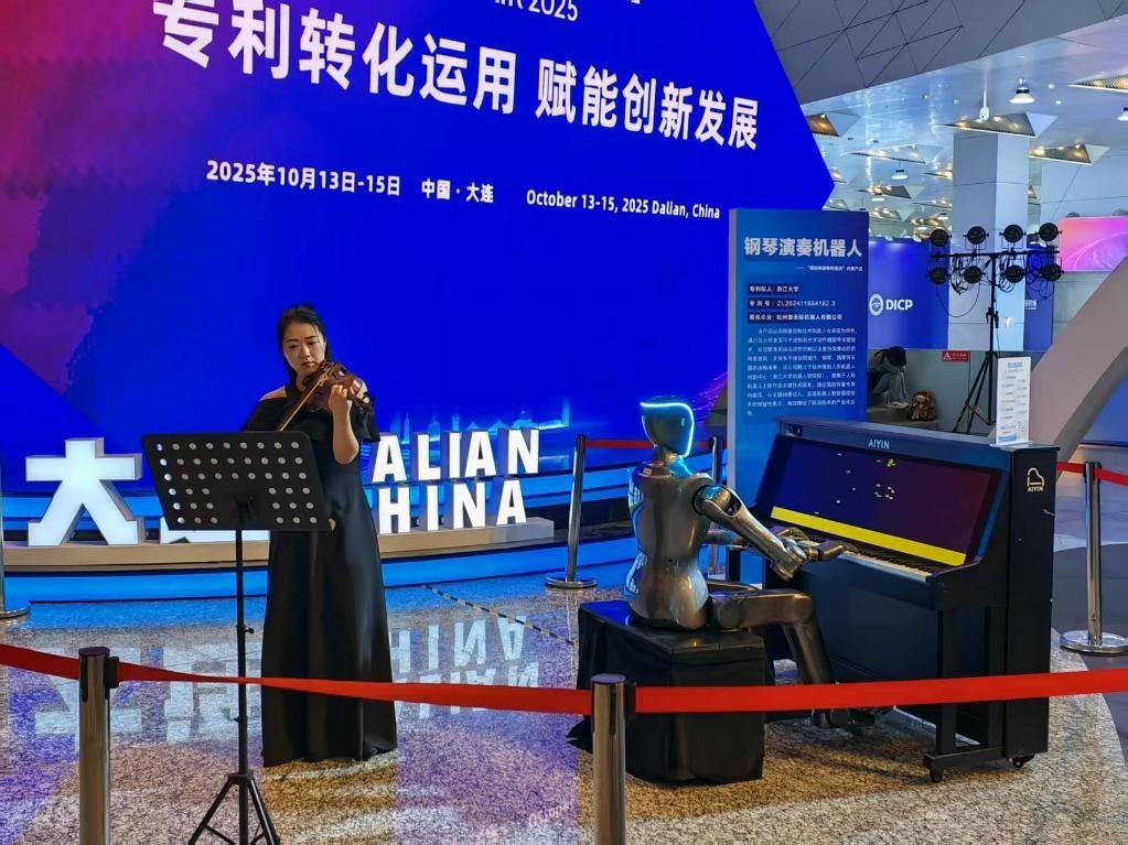 走進一樓的展示大廳,一段優(yōu)美的音樂旋律緩緩流入耳中,一臺人形機器人指尖輕快地在鋼琴鍵盤上飛舞,和一名小提琴演奏家共同奏響《我和我的祖國》,引來許多與會嘉賓駐足聆聽。
