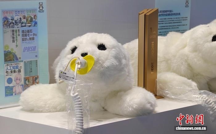 圖為北京千展新世代智能機器人科技有限公司展臺上展出的認(rèn)知功能維護機器人。(中新網(wǎng)記者韓輝 攝)