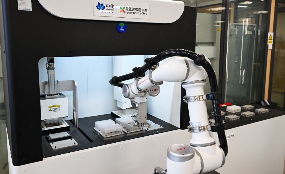 這是9月26日在海南三亞崖州灣科技城中國種子集團(tuán)有限公司拍攝的全自動(dòng)高通量核酸提取平臺(tái)。新華社記者 楊冠宇 攝