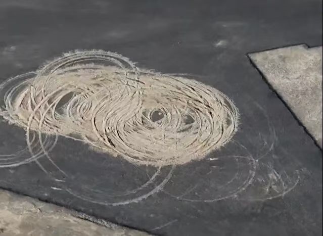 然而,近段時(shí)間以來(lái),一些人穿越戈壁荒漠,來(lái)到這里玩漂移,留下了一個(gè)個(gè)刺眼的痕跡。尤其是在“人民”二字中間,漂移痕跡尤為嚴(yán)重,從空中俯瞰令人痛心。許多網(wǎng)友直言,這不僅是對(duì)戈壁景觀的破壞,更是對(duì)歷史和先輩的褻瀆。