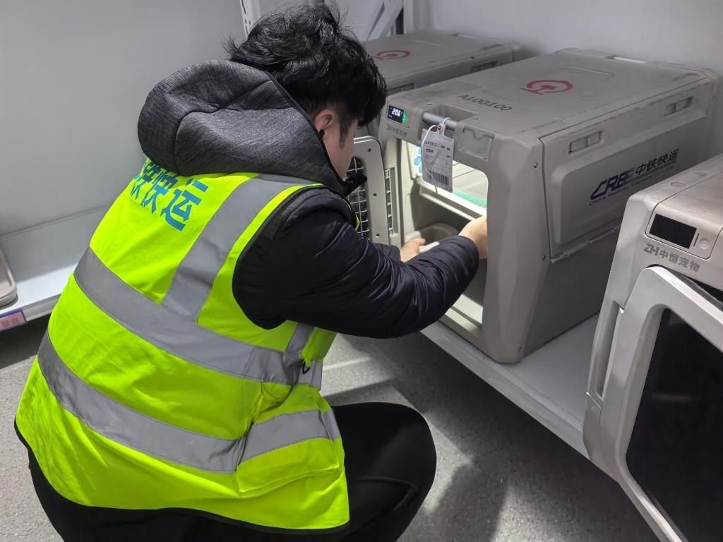 中鐵快運太原南站營業(yè)部業(yè)務(wù)負(fù)責(zé)人武鑫介紹:“我們自今年10月啟動高鐵寵物托運服務(wù)試點以來,已經(jīng)托運過寵物貓、寵物狗等。旅客可以在12306官方平臺或到營業(yè)部現(xiàn)場辦理托運業(yè)務(wù)。托運前,需要提交相關(guān)部門的檢疫證明。工作人員會對寵物運輸箱和列車環(huán)境進(jìn)行嚴(yán)格消毒。寵物運輸箱內(nèi)還帶有攝像頭,主人可以通過監(jiān)控查看自家寵物的實時狀態(tài)。我們配備的工作人員,也會定時檢查寵物狀態(tài),提供必要的安撫和飲水?!?/p>