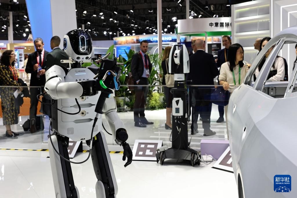 11月5日,一個海克斯康A(chǔ)EON工業(yè)人形機器人在展臺上進行三維掃描作業(yè)演示,這也是該型號機器人工業(yè)自動化應(yīng)用場景的中國首展。