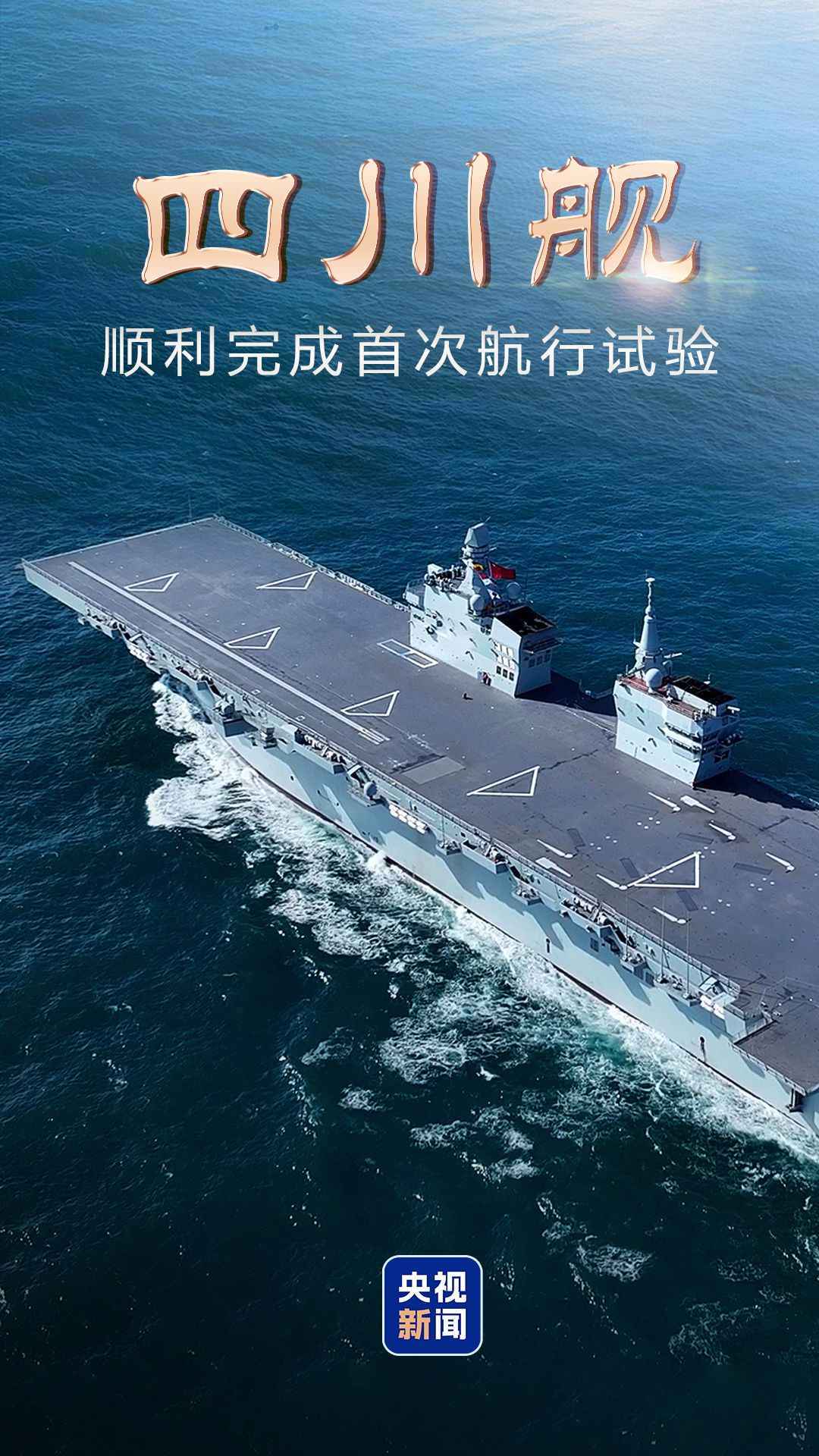 總臺央視記者 李笑琪:伴隨著溫暖的陽光和徐徐的微風(fēng),海軍四川艦順利完成首次航行試驗(yàn)任務(wù),緩緩駛向碼頭。四川艦滿載排水量4萬余噸,它獨(dú)有的雙艦島設(shè)計(jì)也讓這艘艦艇更容易被識別。四川艦還創(chuàng)新應(yīng)用電磁彈射和阻攔技術(shù),可搭載固定翼飛機(jī)、直升機(jī)、兩棲裝備等。這次試航期間,對四川艦動力、電力等系統(tǒng)設(shè)備進(jìn)行了一系列測試,達(dá)到了預(yù)期效果。