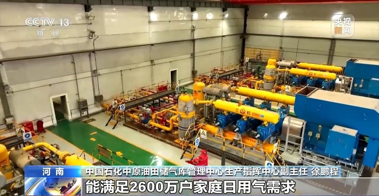 中國(guó)石化中原油田儲(chǔ)氣庫(kù)管理中心生產(chǎn)指揮中心副主任 徐鵬程:入冬前,中原油田儲(chǔ)氣庫(kù)群完成注氣儲(chǔ)備9.4億立方米,較去年多儲(chǔ)備1.2億立方米,達(dá)到歷史最高水平。在用氣高峰期,能滿(mǎn)足2600萬(wàn)戶(hù)家庭的日用氣需求。